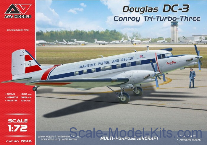 Plastic model 1/72 Douglas DC-3 Conroy Tri-Turbo-Three (A&A Models No.7246)